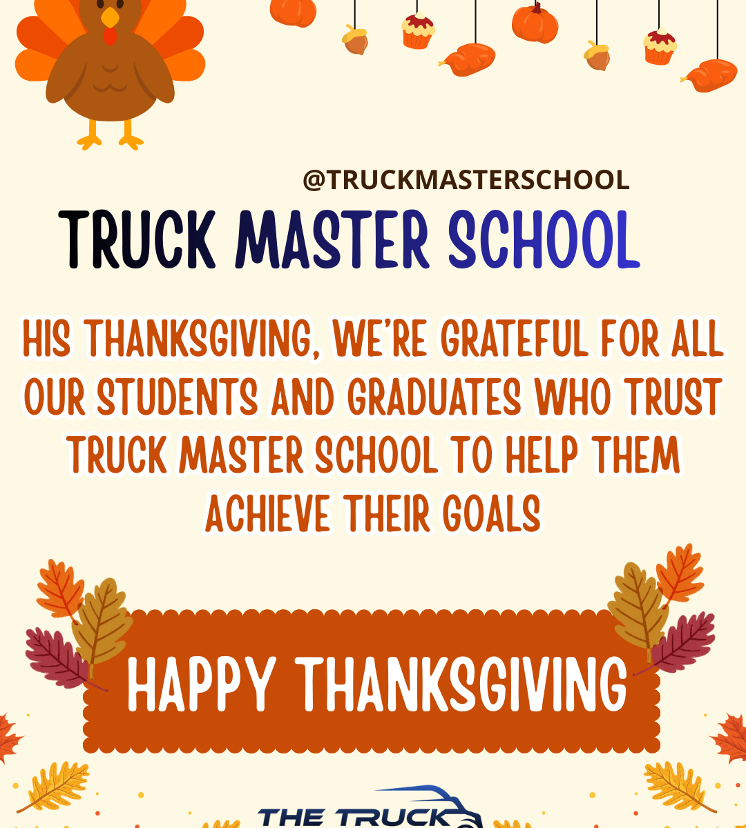 Thanksgiving is more than just enjoying a delicious meal with family and friends; it’s a time to reflect on our goals, achievements, and, most importantly, gratitude. At Truck Master School, this holiday reminds us of the incredible community we’ve built our students, graduates, and staff who ensure every truck hits the road safely and confidently.